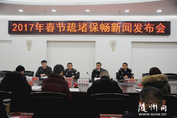 随州网讯  为了广大人民群众春节期间安全、顺利、愉快出行,更好的维护道路交通秩序,日前,随州市公安局交警部门联合市宣传部、城管执法局召开春节疏堵保畅新闻发布会。交警部门将对城区部分路段实行限制通行、禁止通行的管制措施,按照快速出城、进城绕行的方针组织大循环,均衡交通流,确保春节期间不发生大面积、长时间的交通拥堵。(通讯员 李月仙摄)