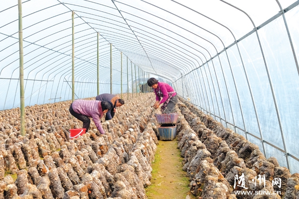 随州网讯  随州香菇香飘武汉。春节期间,千里缘生态农业开发公司利用其武汉销售网络,日均销售随州鲜香菇5万公斤以上。图为该公司曾都区洛阳镇九口堰香菇基地。 (本报记者 李文军摄)