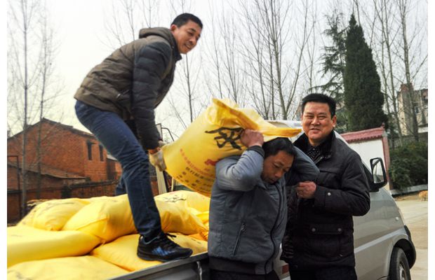 随州网讯 近日,随州市随县厉山镇农技服务中心将3400公斤化肥送到扶贫驻点村同心村,支持春耕生产。 (本报记者 李文军 通讯员 龚承斌 摄)