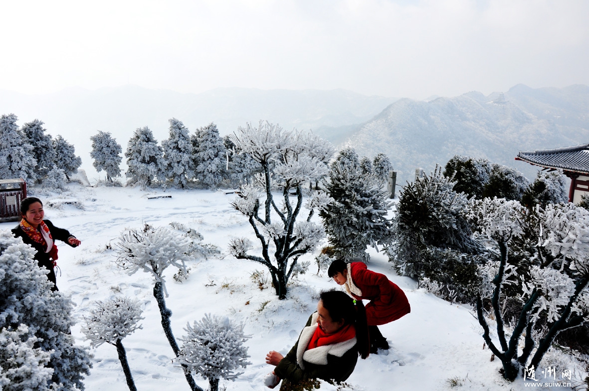 灵猴辞旧岁,瑞雪迎新春。1月27日、28日(除夕、正月初一)两天,大洪山吸引了6000余游客相聚慈恩寺,登高望远,撞钟祈福,共同迎接鸡年到来。来大洪山,你一定要看一场雪。随着2月初的一场断断续续的降雪,大洪山目前已是流云飞渡、漫山洁白,巍巍慈恩寺,犹如人间仙境。再现了明代诗人所写的 《洪山积雪》:“千峰耸峙白云隈,积雪经春未肯开。知是灵山留净域,不教一点着尘埃”的意境。此时,银妆素裹的大洪山雾淞沆砀,天与云与山与水,上下一白,玉树琼枝,纯如甘露,这里宛如人间仙境,亦是你润肺的天然大氧吧。深深深呼吸,穹顶之下拒绝“十面霾伏”,清甜的空气不再是奢侈的权利。还等什么呢,来次亲密接触吧,在浩瀚辽阔的白中,找回最初的那个自己!