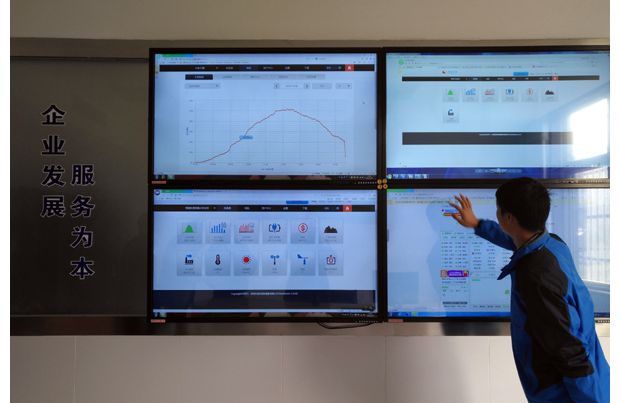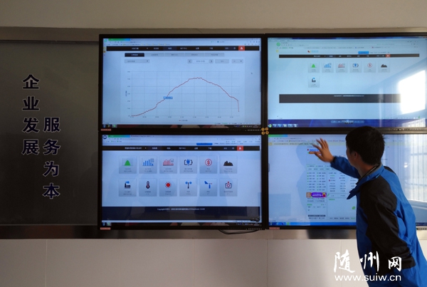 随州网讯 湖北晶星科技股份有限公司积极开展光伏扶贫,在该公司的帮助下,2016年全市126个村组安装了光伏发电设备。图为工作人员正远程监控各村组光伏发电情况。(本报记者 孙洪涛 摄)