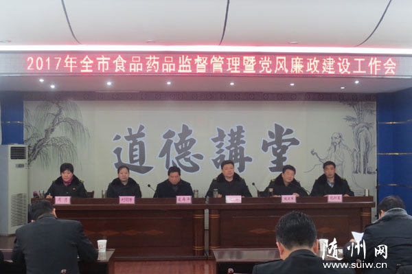 随州网讯 2月14日,随州市食药监局召开全市食品药品监督管理暨党风廉政建设工作会议,推进落实“四有两责”,加快建立健全覆盖全过程的监管制度,深化食品药品监管系统党风廉政建设。(通讯员 李朝俊 摄)