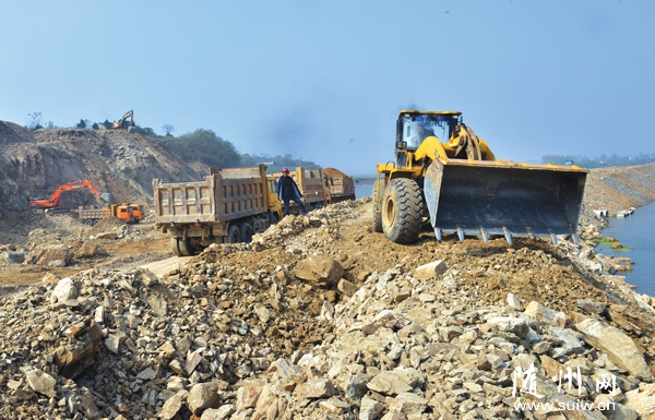随州网讯 随州高新区淅河镇“一河两岸”幸福村河堤大坝建设正抓紧施工,该工程完工后,将为当地居民提供新的休闲场地。(本报记者 孙洪涛 通讯员 王涛摄)