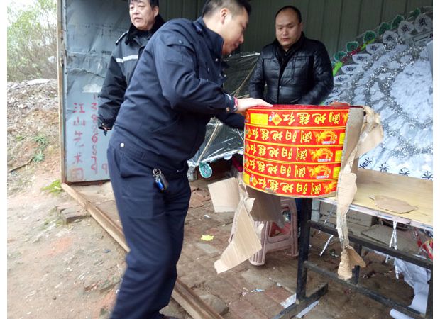 市禁鞭办联合执法组当场收缴非法售卖的烟花爆竹。