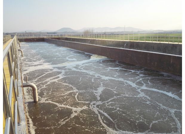 随州网讯 随州市城南污水处理厂已在年前完成主体建筑和试通水,目前正在进行厂区相关设备联调。图为生化池污水曝气调试。(本报记者 王璟天 摄)