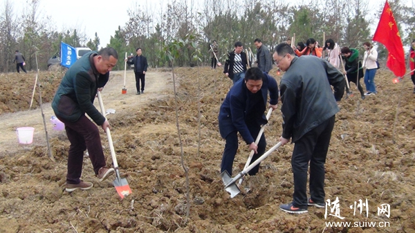 随州网讯 3月4日,随州市国土局城区分局组织隶属的4个国土所及机关工作人员,到曾都区北郊双寺村“湖北福莱科技发展公司生态园”义务植树,为“绿满随州”作贡献。 (本报记者 杨文明 通讯员 汤明 摄)