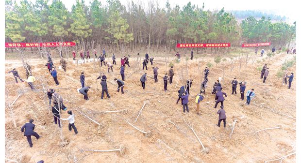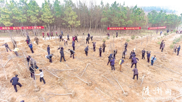 图片-市“四大家”领导和市直各部门负责人在随县厉山镇红星村义务植树。 (本报记者 徐斌摄)