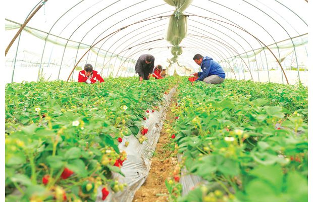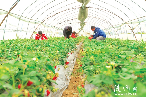 随州城郊的草莓园吸引市民体验采摘的乐趣