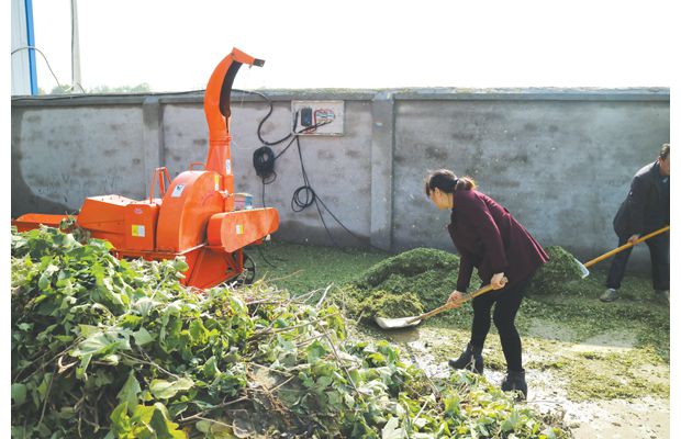 随州网讯 连日来,随州市曾都区府河镇粉铺村将构树粉碎,用作饲料加工的原材料。目前,该镇已形成培育、种植、加工、养殖一条龙的构树扶贫产业链条,效果明显。 (本报记者 唐天才 通讯员 徐唯智摄)