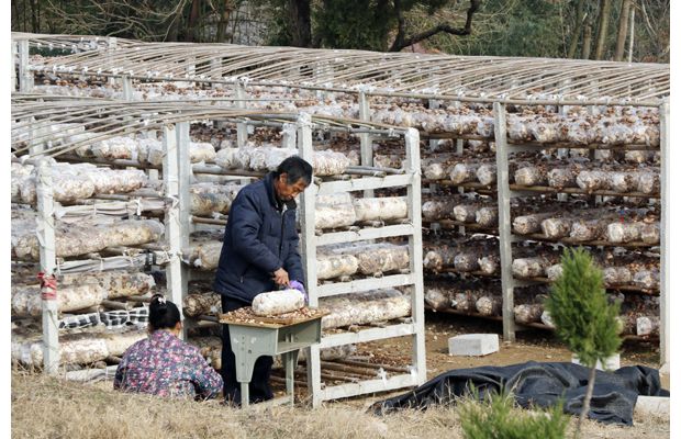 随州网讯 随州市随县殷店镇岩子河农民正积极开展袋料香菇生产,力争增产增收。 (本报记者 孙洪涛 摄)