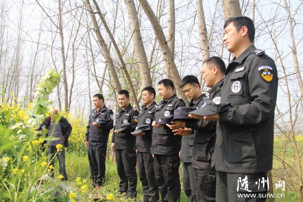 随州网讯  为深切缅怀公安英烈,弘扬公安民警维护社会稳定的牺牲奉献精神,进一步凝聚警心、激励斗志,市公安局特警支队组织民警代表开展“祭战友、铸警魂”缅怀纪念活动,表达对该支队因公牺性民警黄军的无限哀思和崇敬之情。图为4月1日,民警正在进行祭奠活动。(通讯员 张博、刘智明摄)