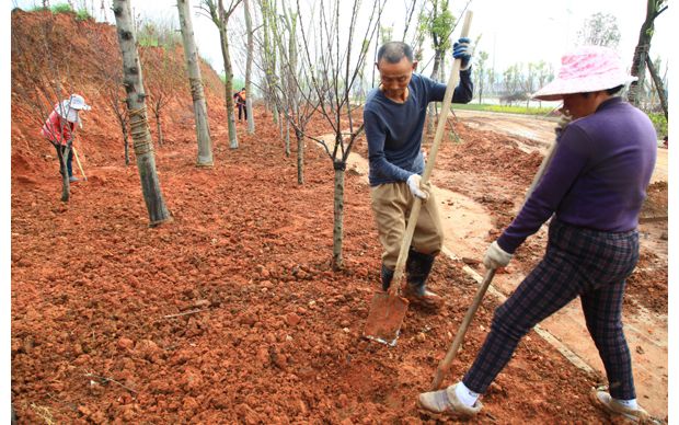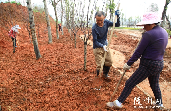 随州网讯 连日来,随州青年东路人行道外侧绿化正在抓紧施工。(本报记者 王璟天摄)