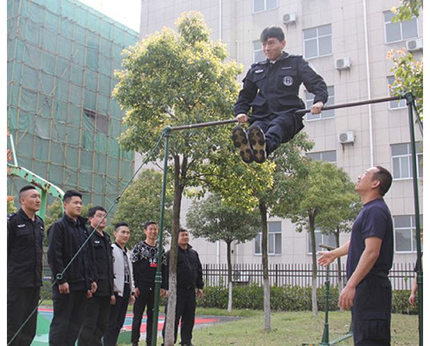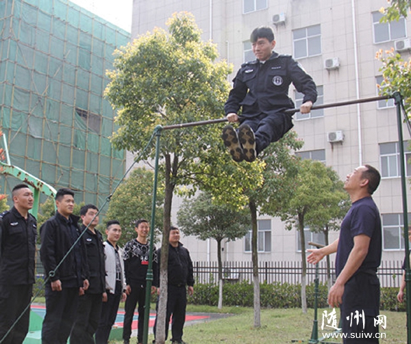 随州网讯 随州特警结合工作实际,强化综合体技能训练,苦练克敌制胜本领,提升队员的综合素质和实战水平。图为随州特警正在进行单(双)杠训练。(通讯员 程昆 刘智明摄)