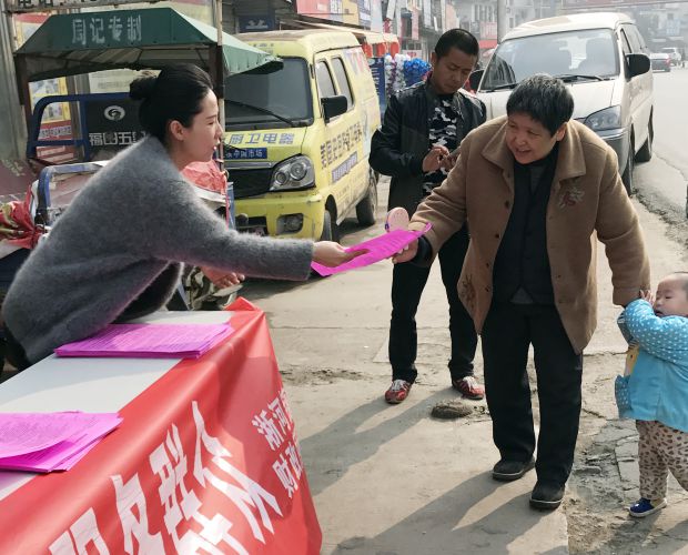 随州网讯 随州高新区淅河镇财政所干部日前走上街头,向农民发放宣传资料,宣传惠农政策。(本报记者 孙洪涛 通讯员 王涛 摄)