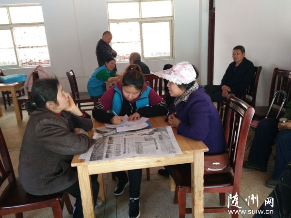 随州网讯  近日,随州市曾都区北郊办事处碾子巷社区协同随州市阳光雨社会工作服务中心,在社区老年活动室开展“关爱荆楚”空巢老人座谈会。志愿者们陪社区空巢老人聊天谈心,关心他们的身体和生活。(本报记者 陈巧玲 通讯员 裴先梅摄)