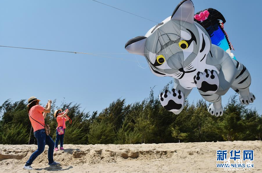 3月10日,在泰国碧武里府七岩海滩,游客在泰国国际风筝节上观赏、拍照。当日,由泰国国家旅游局主办的2017泰国国际风筝节在碧武里府七岩海滩开幕。在为期三天的活动中,除了形态各异的大型风筝之外,人们还可以欣赏到来自世界各地20支专业风筝表演队的技艺,领略风筝的魅力。新华社记者李芒茫摄