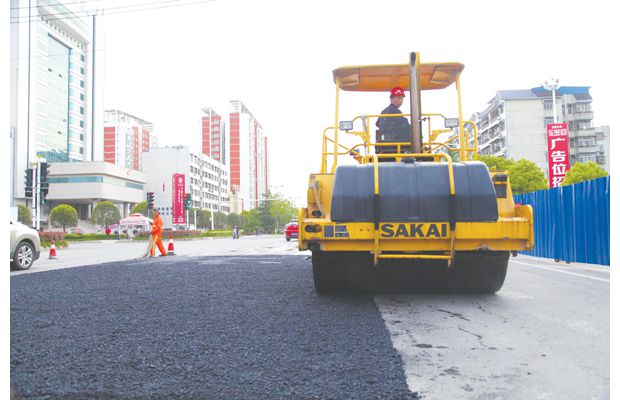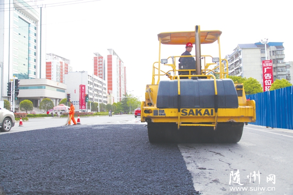 随州网讯 随着城市车辆越来越多、居民对市政道路使用频繁,道路压力巨大,4月,市政部门对城区道路褶皱地段进行修复除褶,保障市民出行安全。 (本报记者 王璟天 摄)