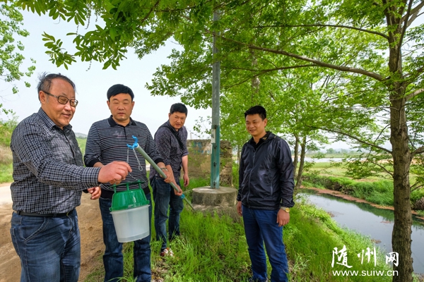 随州网讯 随州市森防站高度重视美国白蛾的监测防控工作,在随县、广水市、曾都区开展二级防控,近日在全市重点区域安装50台美国白蛾诱捕器,力争做到早发现、早防治,确保我市森林安全。图为工作人员在广水市武胜关镇腊水河村安装美国白蛾诱捕器。 (本报记者 李文军 摄)