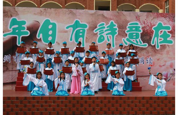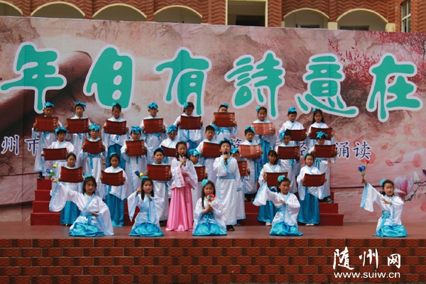 随州网讯 近日,随州市外国语学校小学部成功举办了“童年自有诗意在”经典诵读活动。孩子们身着传统服饰,或深情诵读,或翩翩起舞,以独特的表现形式致敬古人的经典篇章,赢得了在场观众的阵阵掌声。 (通讯员 晏坤山摄)