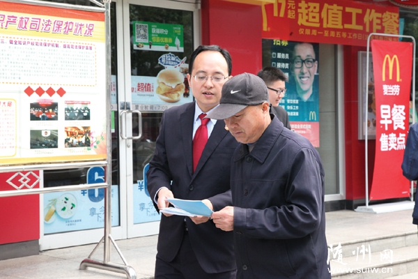 随州网讯  4月26日,随州市中级人民法院开展知识产权法治宣传,通过在市区解放路设置宣传展台及法律咨询台,发放知识产权宣传手册,介绍知识产权的相关政策和法律规定,同时组织知识产权合议庭法官到宣传现场,接受广大市民的法律咨询。 (通讯员 李海波摄)