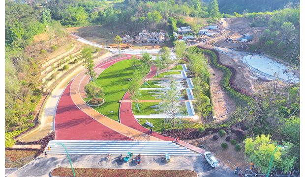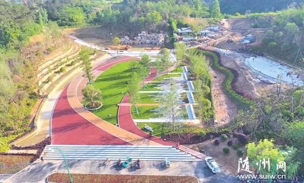 随州网讯 随城山国家生态公园主体工程完工,工人们正在进行绿化收尾工作。 (本报记者 徐斌 摄)