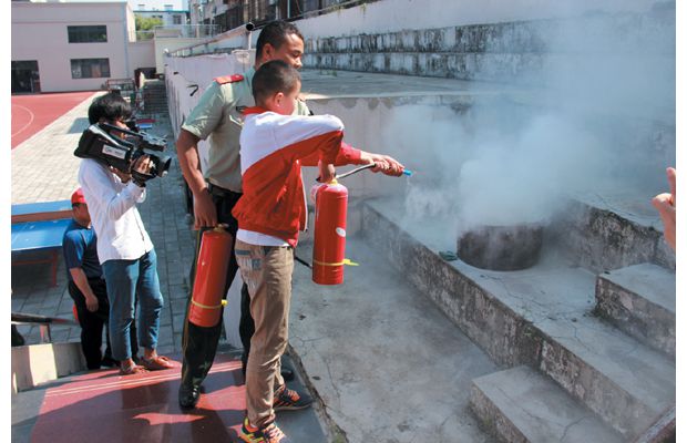 随州网讯 近日,随州市曾都区文峰学校联合曾都区消防大队开展消防演练活动。该校3—8年级1781名学生参与了扑灭液化汽罐火焰的实练,体验了在黑暗的模拟烟室里正确逃生的场景。此次活动,提高了该校师生实际应对和处置突发安全事件的能力,进一步增强了师生的安全意识。 (通讯员王力 汪建军摄)