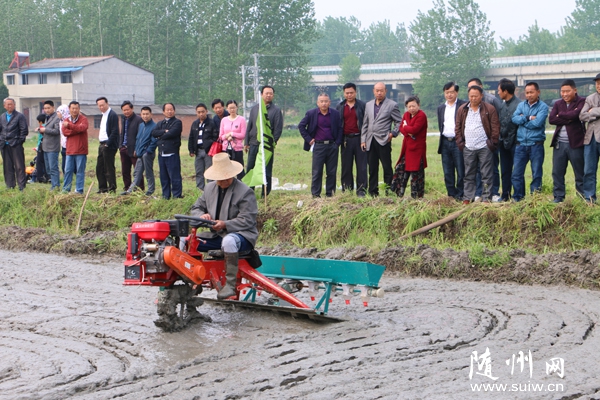 随州网讯 水稻机械直播技术是继水稻机械化插秧后的又一种机械化种植技术,具有省工省力、节水节本、增产增效的优势。近日,市农机局在随县举办中稻机械化直播现场演示推进活动,县市区农机部门、粮食种植合作社、种粮大户代表等80余人现场观摩。(本报记者 王璟天通 讯员 黄伟摄)