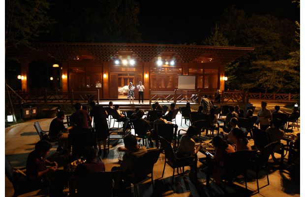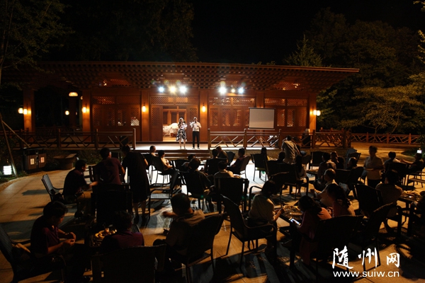 27日晚,采风团还在大洪山核心景区筱泉湾度假村广场举行了“大洪山文化夜话”活动,三地人员围绕大洪山佛教文化、红色文化、绿色文化、传奇文化进行深入交流,互赠文学作品,并即兴表演节目。