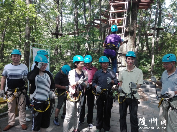 中国大洪山网讯 激情夏日季,精彩大洪山。为深入挖掘大洪山文化,提升大洪山旅游品牌,5月27日至28日,由深圳、襄阳、随州三地文学艺术界联合组成的“大洪山文化探源”采风团走进大洪山风景名胜区,深入体验“佛教名山、养生天堂”的魅力。登楚北天空第一峰,虔诚礼佛慈恩寺,漫游千佛古道,探秘两王洞,飞跃剑口丛林,徜徉白龙池古栈道……两日来,采风团一行30余人先后深入景区各大景点,感受大洪山厚重的文化,领略景区优美的自然风光。在慈恩寺,采风团成员登金顶、拜舍利、观云海、听法会,深厚的佛文化与秀丽的风光组成的动静皆相宜的体验给大家留下深刻的印象。山随水转、水绕山行,大洪山里深呼吸,千佛古道行,大家一路欢歌笑语。攀岩剑口绝壁、过缅甸桥、凌空飞跃丛林,极具动感的户外体验,采风团成员个个激情满怀,争相体验。