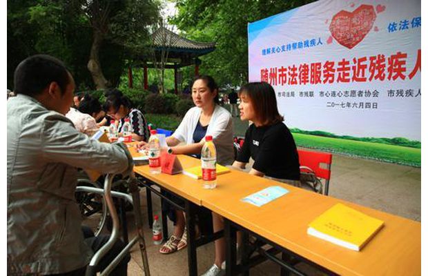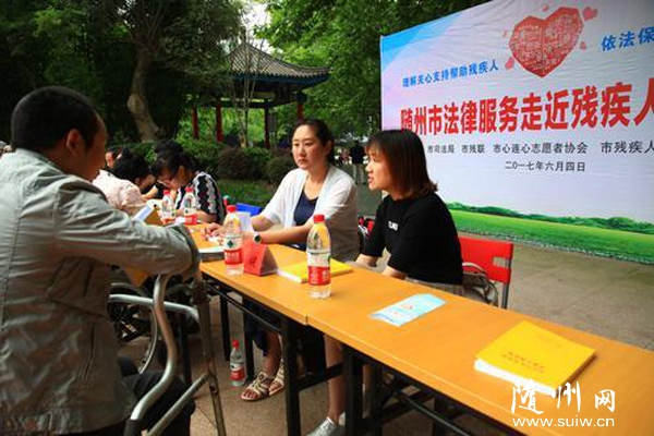 随州网讯 随州市举行“法律服务走近残疾人”活动,为有法律需求的残疾人及残疾人家属、助残志愿者提供相关法律咨询服务和免费法律援助。 (本报记者 王璟天摄)