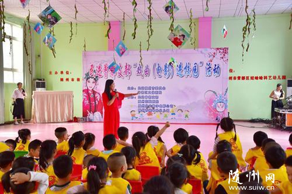 随州网讯  近日,随州花鼓剧院开展了“戏曲进校园”活动。图为花鼓剧院演员为娃哈哈幼儿园的孩子们表演戏剧。(通讯员 何丹摄)