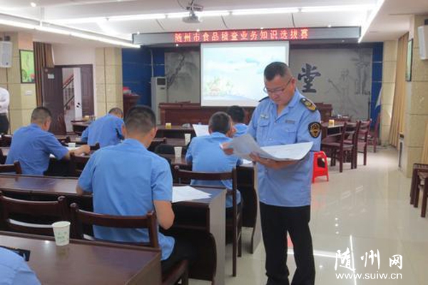 随州网讯  随州市食药监局扎实开展“大学习、大培训、大比武、大交流、大考核”五大活动,进一步提高食品药品行政执法水平。图为开展食品稽查知识考试。(通讯员李朝俊摄)