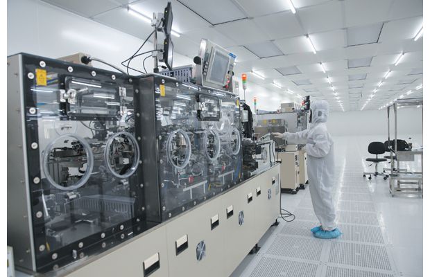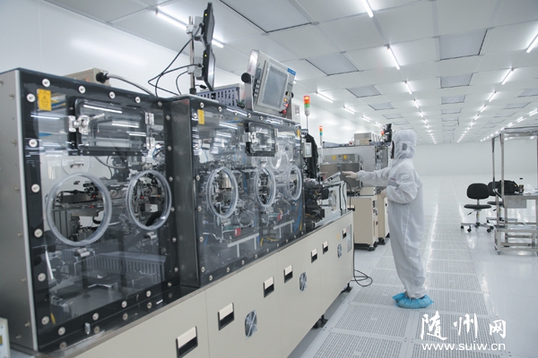随州网讯 半年即将过去,随州市各工业骨干企业加强生产经营调度,力争“双过半”。图为泰晶科技公司生产车间一角。(本报记者 王璟天摄)