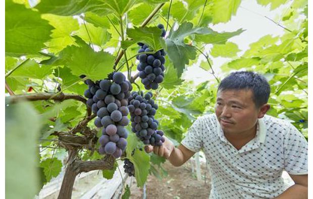 随州网讯 6月13日,随州市随县尚市镇尚市店居委会的移民龚仕军在葡萄大棚准备采摘葡萄。龚仕军流转土地种植大棚葡萄二十多亩,每亩实现纯利润1.5万元。 (本报记者 徐斌摄)