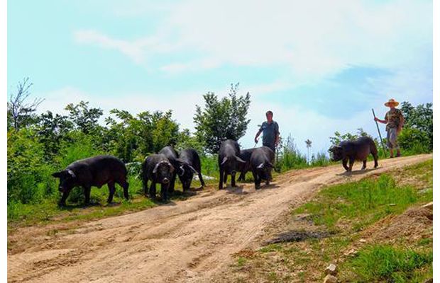 随州网讯 湖北石头记生态农业公司利用随县草店镇三道河村生态优势和丰富的原始橡树林资源,结合精准扶贫工作,与100余农户签订年出栏4000头生态黑猪养殖合同,天然放养橡果黑猪,助农增收。(本报记者 李文军 通讯员 韩铁流摄)