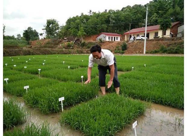 随州网讯 武汉大学生命科学学院高级工程师余金洪和科研团队利用大洪山景区长岗镇特殊气候环境,开展绿色超级稻品种选育科研课题项目研究。据悉,绿色超级稻选育是国家级科研课题,项目周期长达15年。(本报记者 王璟天摄)