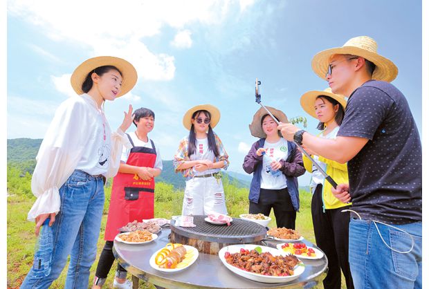 随州网讯 湖北广播电台网络直播平台“舌尖之旅”日前走进随县草店镇,现场品味和感受当地橡果生态黑猪、香菇、车云山毛尖等美味,当场吸粉近万人。(本报记者 李文军摄)