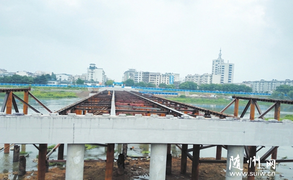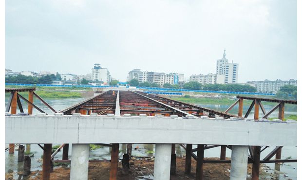 氵厥水一桥准备启动钢箱梁吊装。 (本报记者冯家园摄)