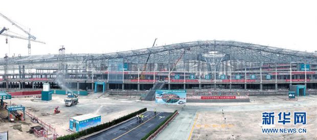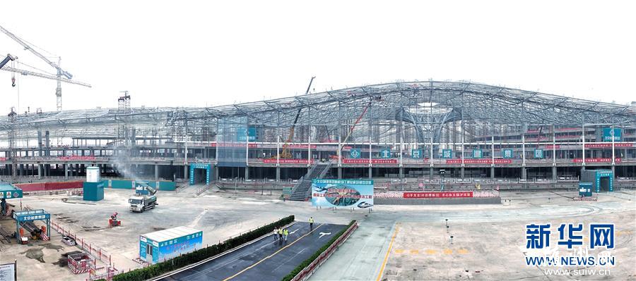 北京新机场建设顺利 主体钢结构框架已经封顶的北京新机场航站楼主体(7月20日摄)。 李欣 摄