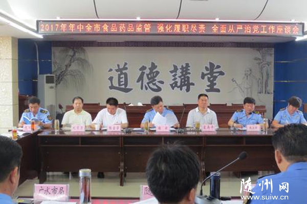 随州网讯 7月18日,随州市食药监局召开 2017年年中食品药品监督管理、强化履职尽责、全面从严治党工作座谈会,总结交流上半年工作经验,研究部署下半年工作,确保各项工作取得好成绩。(通讯员 李朝俊 摄)