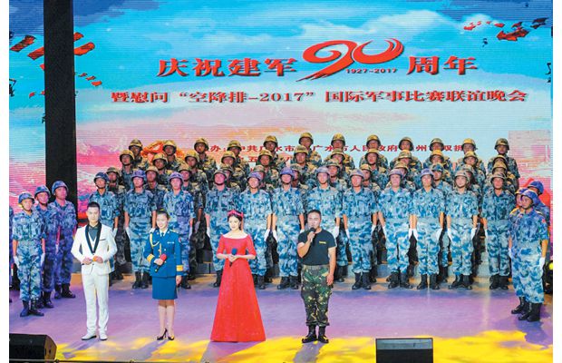 8月1日,庆祝建军90周年暨慰问“空降排-2017”国际军事比赛联谊晚会在广水举行。 (本报记者 李文军摄)