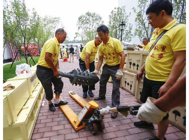 “这套编钟复制件是根据2号编钟改造过的,重1.6吨左右,拆下来有97件配件,加上大尊缶、鉴缶和编磬、古琴、古筝、建鼓,大大小小的配件有150多件,装了大大小小57各个箱子。”市博物馆艺术团团长聂荣说。8月11日在北京通州驻地,这些“大国重器”第一次亮相,参加节目合练,工人们把它们从大货车上卸下来,一件件搬进排练厅组装,大尊缶无法拆卸,8个工人一起把这个800多斤重的大家伙抬进去。