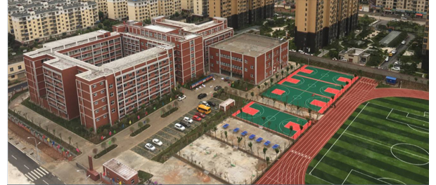 渐渐的,教学楼、宿舍楼、食堂、幼儿园……一栋栋建筑拔地而起,装饰一新;篮球场、足球场、幼儿园运动场……一个个标准化的场地顺利完工。一座崭新的胜利学校呈现在世人面前。