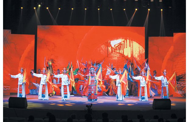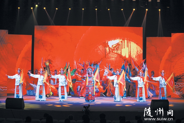 随州网讯 9月8日,第33个教师节来临之际,随州市曾都区举行庆祝教师节颁奖文艺演出。图为随州市外国语学校文艺表演——戏曲《薪火相传》。(本报记者 王璟天摄)