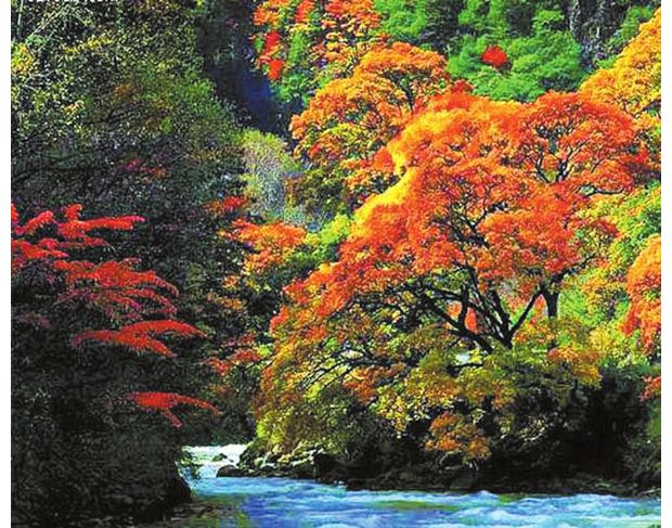 桐柏山是南北气候的过渡带,江淮两大水系的分界线。既有北国山体的雄浑,又有南疆风光的秀丽。八访涧是一条长达6千米的大峡谷。举目远眺,秀峰幽谷连绵,清溪飞瀑串珠。春有山花烂漫,秋有红叶似焰。峻山连绵叠翠,异洞奇石峭壁。是一道最能体验风景区山水神韵自然与人文景观交融的风景线