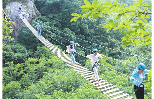 动静皆相宜,畅享大洪山。在即将来临的长假里,无论你是爱运动的,还是喜欢清静的,又或者是动静兼需的,大洪山已做好全方位的准备。静,可来到宝珠峰,参与全程参加慈恩寺礼佛活动,走进大洪山图书馆(慈恩寺禅修书院),静享美好时光,亦或在楚北天空第一峰,观云来雾往,任思绪飞扬。动,可在剑口户外公园挑战丛林飞跃、缅甸桥、飞拉达等项目,来一次惊险刺激的“心动”历程。亦可沿樵河古道、绿林古道、白龙池栈道等漫步绿林深处,深深呼吸富含氧离子的清新空气。累了,路旁的山石、古木,无不是我们休憩的好地方。在山下长岗镇区附近,大洪山花果海的百余亩冬桃正迎来成熟季,走进果园,亲手体验采摘之乐,那冬桃一定是最甜的味道。