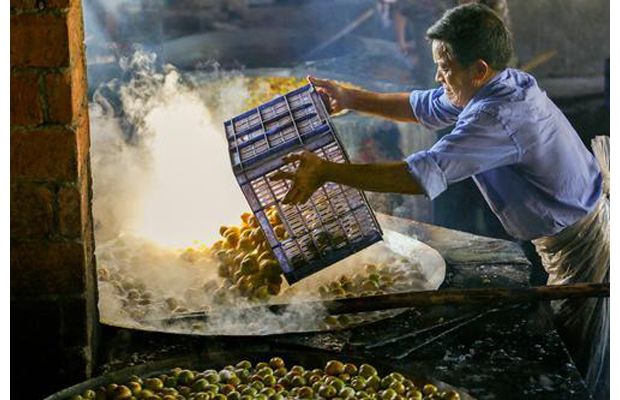 随州网讯 随州市随县唐县镇华宝山村是著名的枣乡,用当地品种罗汉枣制作的“金黄蜜枣”以“色泽如樱、透明见核、味甜似蜜、沙酥爽口”而闻名。近年来,该村通过乡村游带动了蜜枣热销。图为枣农正在用传统工艺加工蜜枣,以供国庆节游客上门采购。 (本报记者 李文军 通讯员 黄江 摄)