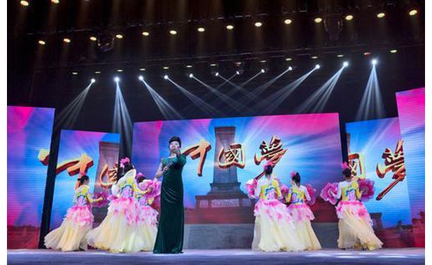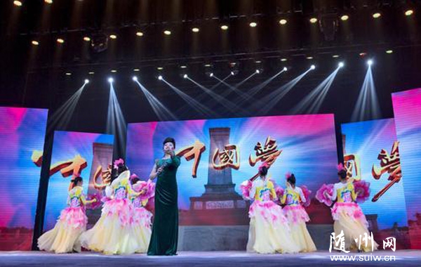 随州网讯 10月13日,“喜迎十九大·魅力随州行”专场文艺晚会在神农大剧院举行,晚会由省文化厅大型文化活动中心与曾都区花鼓艺术剧院联合举办,以魅力随州为主题,展示了随州人民克难奋进和寻梦、展梦、圆梦精神。图为国家一级演员、江汉大学教授吴姿霖演唱歌曲《共圆中国梦》。(本报记者徐斌 摄)