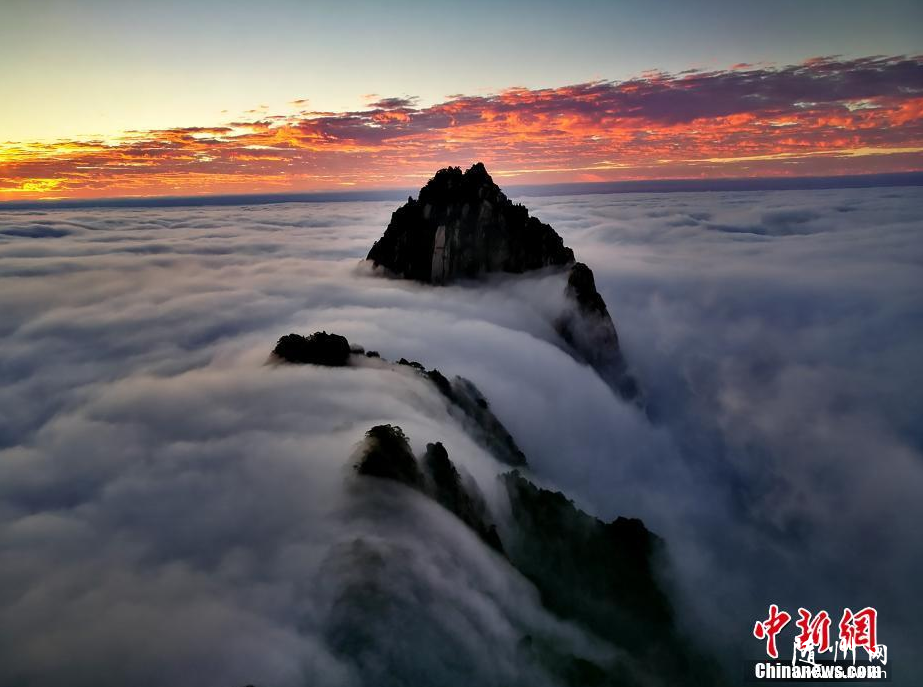 历经数天秋雨的黄山,1021日晨间放晴,迎来深秋时节云海瀑布景观。中新社发 关碧瑶