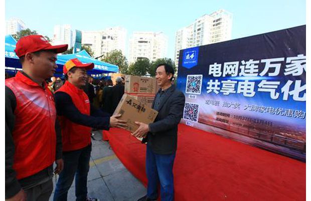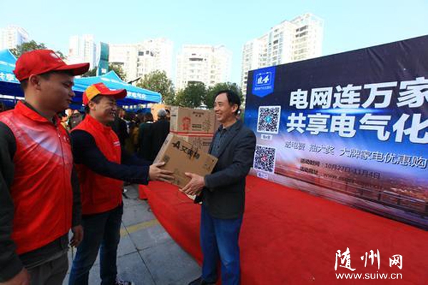 随州网讯 10月27日,国网随州供电公司开展“电网连万家、共享电气化”推广活动,现场讲解用电知识,赠送礼品。 (本报记者 王璟天 通讯员 陈孜孜摄)